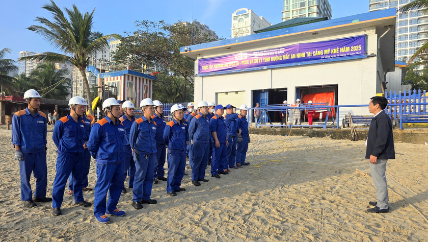 Nhằm nâng cao tính chủ động, chuyên nghiệp trong sẵn sàng ứng phó sự cố tràn dầu (ƯPSCTD), phòng cháy chữa cháy (PCCC) và xử lý các tình huống mất an ninh một cách nhanh chóng và hiệu quả khi sự cố mới xảy ra, đồng thời đánh giá tình trạng trang thiết bị ƯPSCTD và sự chủ động trong công tác ứng phó khi xuất nhập xăng dầu tại Cảng Mỹ Khê Tổng kho Xăng dầu Đà Nẵng (Tổng kho) đã tổ chức thực tập phương án ƯPSCTD Cảng Mỹ Khê vào ngày 13/12/2025.